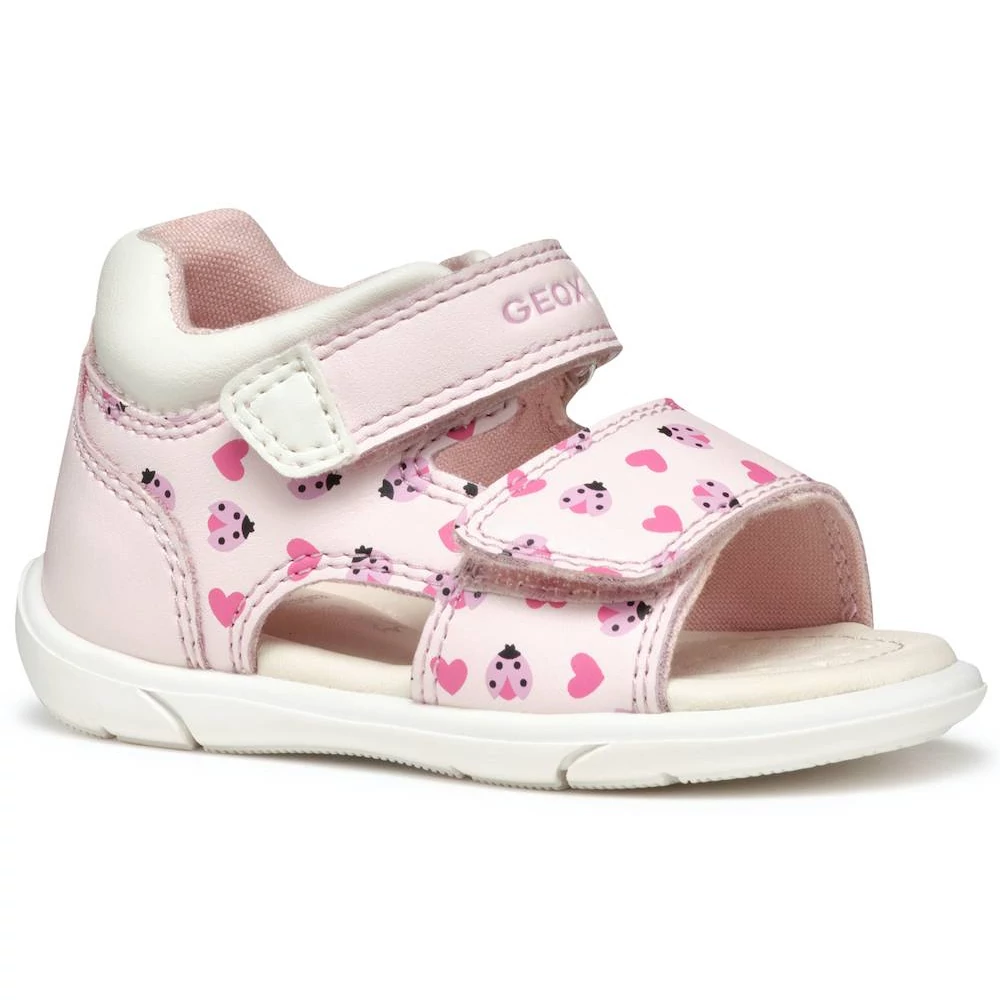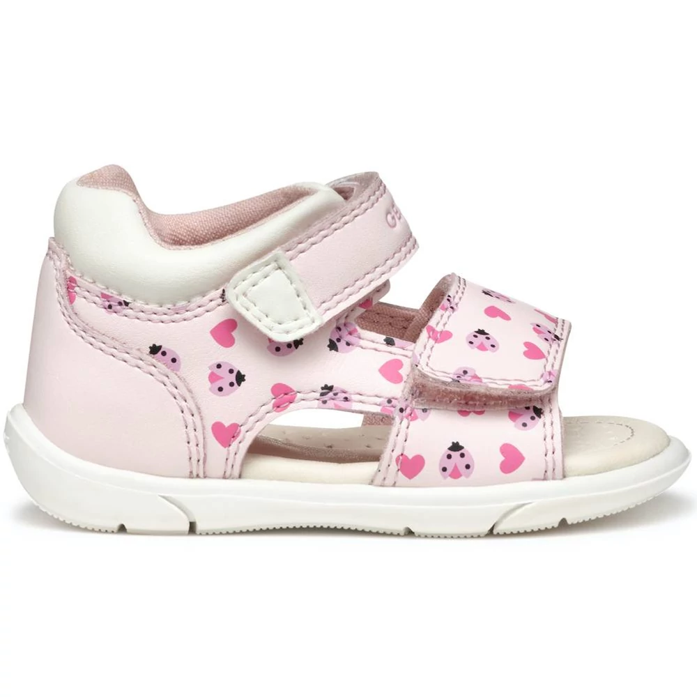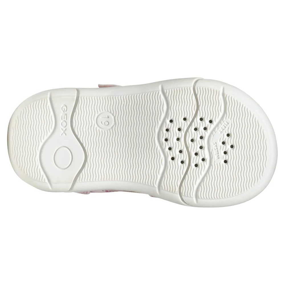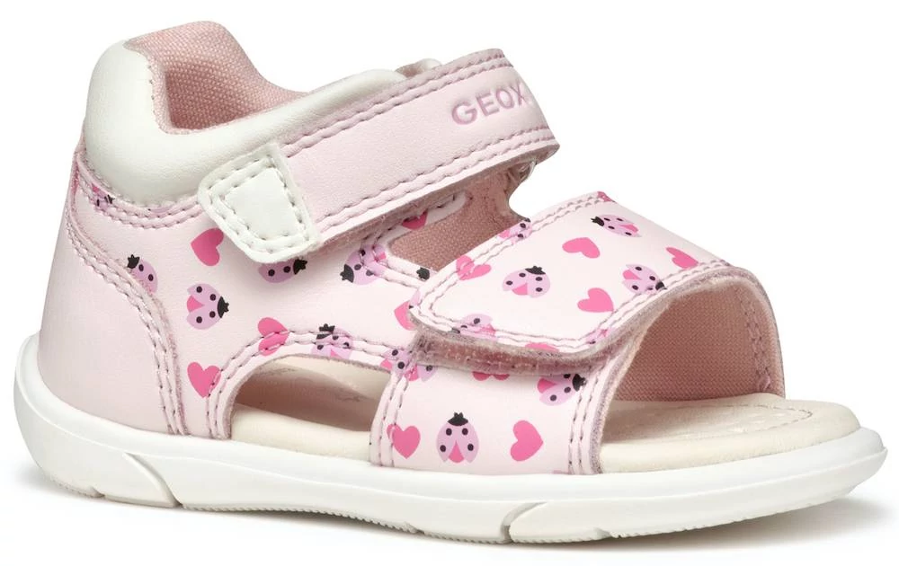 Első lépéseket segítő Geox szandál kislányoknak, kényelmes és légáteresztő kialakítással, nyitott orr-résszel és zárt sarokkal. A Zapito modell ezen változata bájos mintázatú felsőrésszel készül, elefántcsont és rózsaszín színkombinációban, amely vidám hangulatot kölcsönöz a gyermekek hétköznapi megjelenésének. Bőrhatású anyagból készült, könnyen állítható, és megfelelő tartást, védelmet és stílust biztosít a kis felfedezőknek.