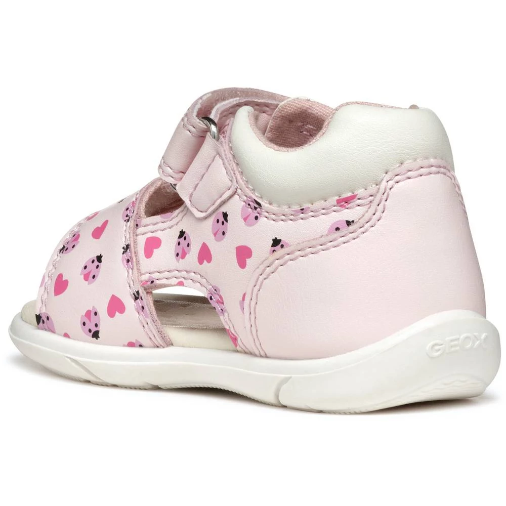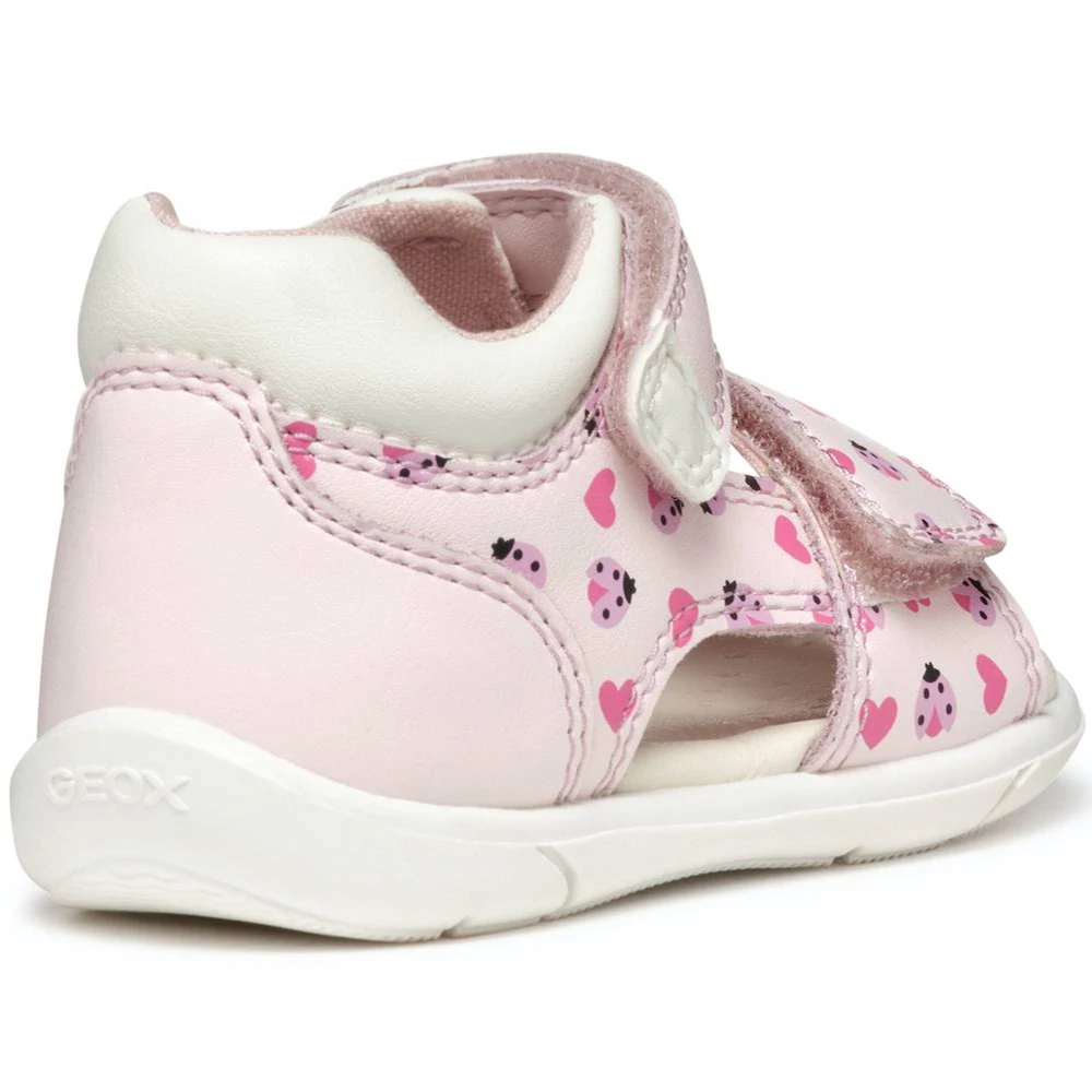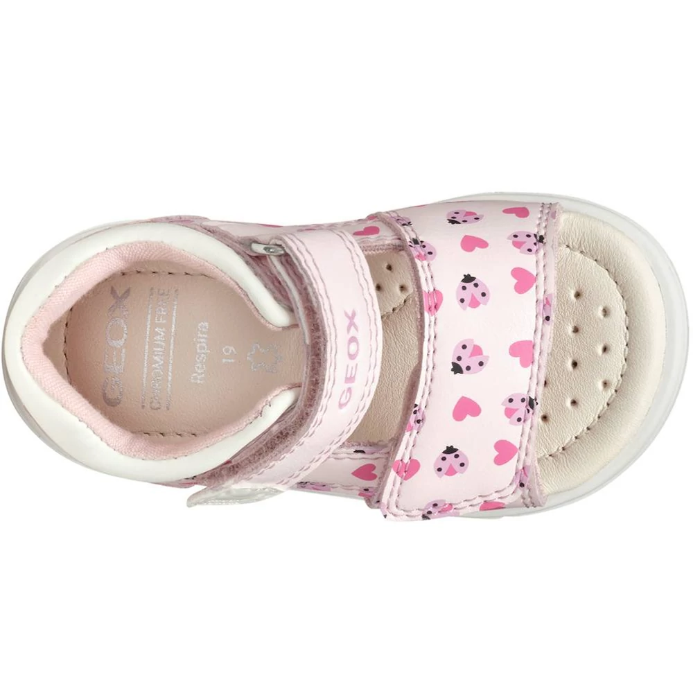 Első lépéseket segítő Geox szandál kislányoknak, kényelmes és légáteresztő kialakítással, nyitott orr-résszel és zárt sarokkal. A Zapito modell ezen változata bájos mintázatú felsőrésszel készül, elefántcsont és rózsaszín színkombinációban, amely vidám hangulatot kölcsönöz a gyermekek hétköznapi megjelenésének. Bőrhatású anyagból készült, könnyen állítható, és megfelelő tartást, védelmet és stílust biztosít a kis felfedezőknek.