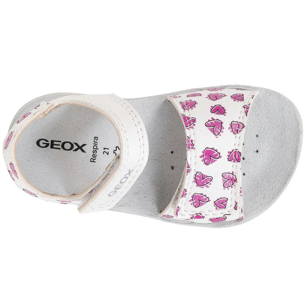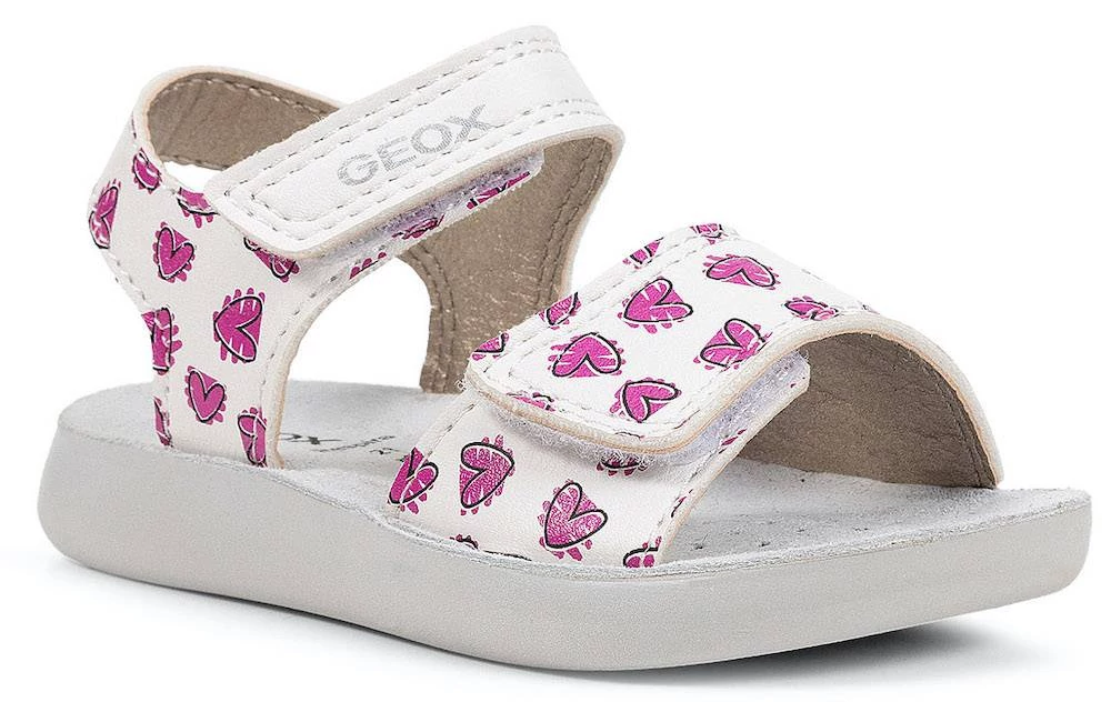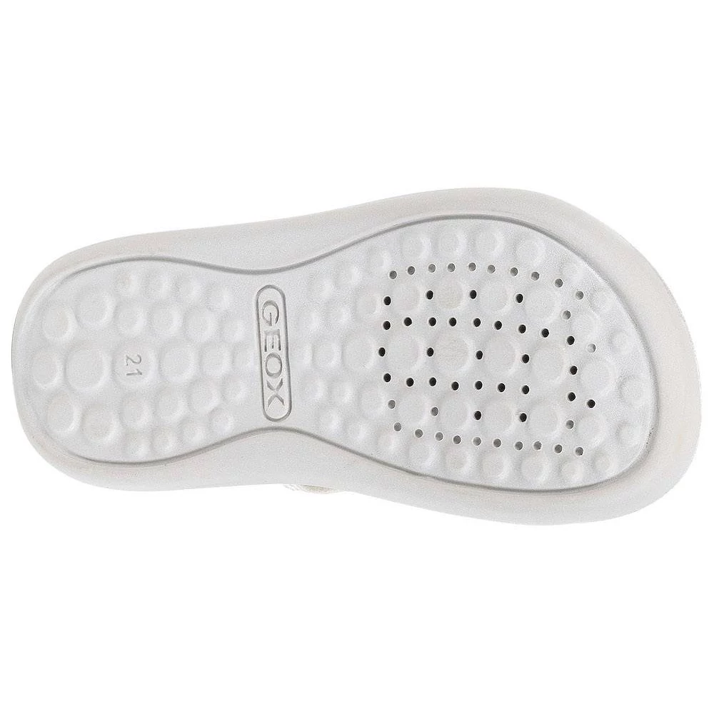 Könnyű, párnázott Geox szandál kislányoknak, amely stílusos lendületet visz a mindennapi öltözködésbe. A Lightfloppy modell fehér és fukszia rózsaszín változata díszített felsőrésszel rendelkezik, amely tökéletesen kiegészíti a lezser, meleg időre szánt öltözékeket. Nyomott mintás, bőrutánzatú anyagból készült, és minden lépésnél kényelmet és tartást biztosít.