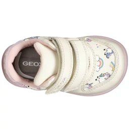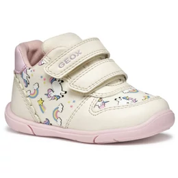 A kicsi gyerekek első lépéseit támogató Geox gyerekcipő, rugalmas és légáteresztő kialakítással, valamint vonzó, lezser megjelenéssel. Textil és bőrhatású anyag kombinációjával rendelkezik. A praktikus, dupla tépőzáras záródás megkönnyíti a felvételt és biztosítja a megfelelő illeszkedést. Emellett optimális tartást, védelmet és maximális kényelmet nyújt a kis felfedezők számára.