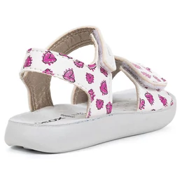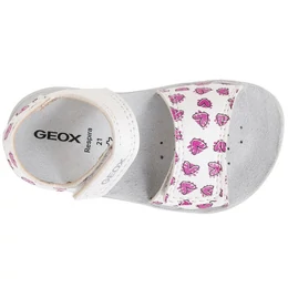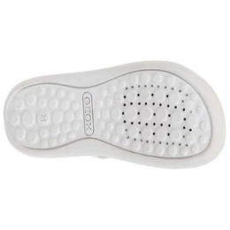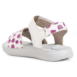 Könnyű, párnázott Geox szandál kislányoknak, amely stílusos lendületet visz a mindennapi öltözködésbe. A Lightfloppy modell fehér és fukszia rózsaszín változata díszített felsőrésszel rendelkezik, amely tökéletesen kiegészíti a lezser, meleg időre szánt öltözékeket. Nyomott mintás, bőrutánzatú anyagból készült, és minden lépésnél kényelmet és tartást biztosít. A GEOX legfőbb célja, hogy gyerekcipőik mind formatervezésben mind kényelemben megefeleljenek a gyereklábak igényeinek. A magasszintű szakértelemnek köszönhetően a GEOX pontosan tudja, hogy mire van szüksége gyermeked lábának a megfelelő fejlődéshez és kényelemhez a különböző növekedési szakaszokban.