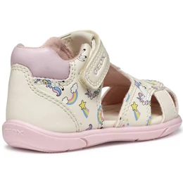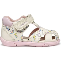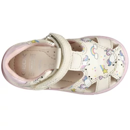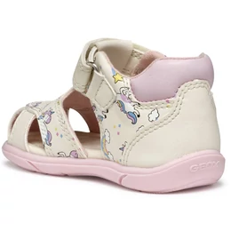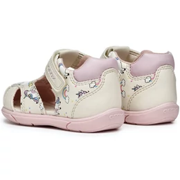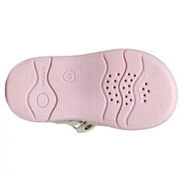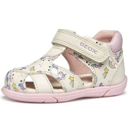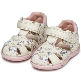 Első lépéseket segítő Geox szandál kislányoknak, kényelmes és légáteresztő kialakítással, „fisherman” típusú orr-résszel és zárt sarokkal. A Zapito modell ezen változata bájos mintázatú felsőrésszel készül, elefántcsont és rózsaszín színkombinációban, amely vidám hangulatot kölcsönöz a gyermekek hétköznapi megjelenésének. Bőrhatású anyagból készült, könnyen állítható, és megfelelő tartást, védelmet és stílust biztosít a kis felfedezőknek. A GEOX legfőbb célja, hogy gyerekcipőik mind formatervezésben mind kényelemben megefeleljenek a gyereklábak igényeinek. A magasszintű szakértelemnek köszönhetően a GEOX pontosan tudja, hogy mire van szüksége gyermeked lábának a megfelelő fejlődéshez és kényelemhez a különböző növekedési szakaszokban.