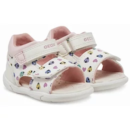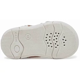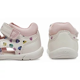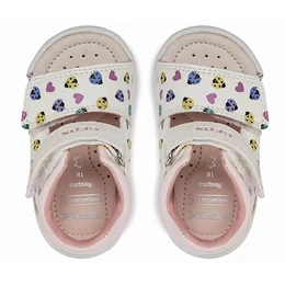 Első lépéseket segítő Geox szandál kislányoknak, kényelmes és légáteresztő kialakítással, nyitott orr-résszel és zárt sarokkal. A Zapito modell ezen változata bájos mintázatú felsőrésszel készül, elefántcsont és rózsaszín színkombinációban, amely vidám hangulatot kölcsönöz a gyermekek hétköznapi megjelenésének. Bőrhatású anyagból készült, könnyen állítható, és megfelelő tartást, védelmet és stílust biztosít a kis felfedezőknek. A GEOX legfőbb célja, hogy gyerekcipőik mind formatervezésben mind kényelemben megefeleljenek a gyereklábak igényeinek. A magasszintű szakértelemnek köszönhetően a GEOX pontosan tudja, hogy mire van szüksége gyermeked lábának a megfelelő fejlődéshez és kényelemhez a különböző növekedési szakaszokban.