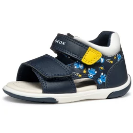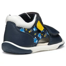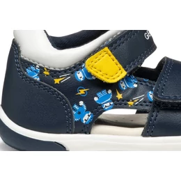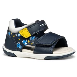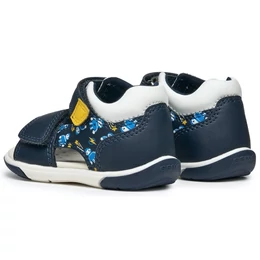 Első lépéseket segítő Geox szandál kisfiúk számára, kényelmes és légáteresztő kialakítással, „fisherman” típusú orr-résszel és zárt sarokkal. A Zapito ezen változata tengerészkék színkombinációban, mintás felsőrésszel készült, vidám megjelenésével feldobja a gyermekek mindennapi szettjeit. Egyszerű és mintás bőrhatású anyagból készült, és biztosítja a kis felfedezők számára a megfelelő tartást, védelmet és stílust. A GEOX legfőbb célja, hogy gyerekcipőik mind formatervezésben mind kényelemben megefeleljenek a gyereklábak igényeinek. A magasszintű szakértelemnek köszönhetően a GEOX pontosan tudja, hogy mire van szüksége gyermeked lábának a megfelelő fejlődéshez és kényelemhez a különböző növekedési szakaszokban.