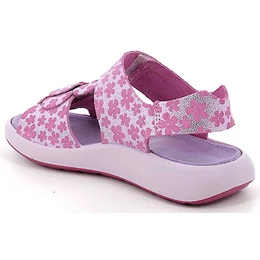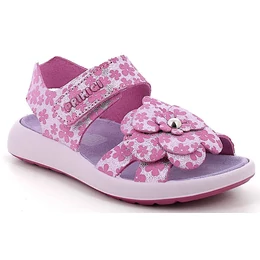 Primigi gyerekszandál minimál dizájnnal és egyszerű részletekkel. A boka- és elülső részen található tépőzár kényelmes és biztonságos rögzítést biztosít. Az elülső pántot egy virágdíszítés teszi különlegessé, amely stílust és nőiességet kölcsönöz a szandálnak. A velúrbőr talpbetét egész napos kényelmet nyújt, légáteresztő felületével pedig frissességet biztosít. A masszív talp megfelelő stabilitást ad a viselés során.
