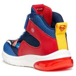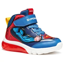 Fiú Geox sportcipő lendületes, dinamikus dizájnnal, amely Superman ihletésére született a Geox és a Warner Bros együttműködésében. A kék és piros színváltozat bőrhöz hasonló hatású anyagból és hálós betétekkel készült, így játék közben is kényelmes viseletet nyújt. A Geox Ciberdron modell különlegessége a talpba épített vidám fényjáték, amely minden lépésnél felvillan, stílust és izgalmat csempészve a mindennapi kalandokba.