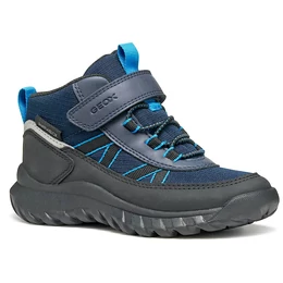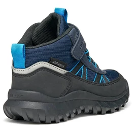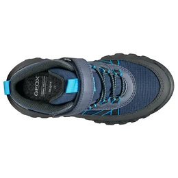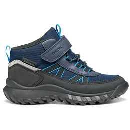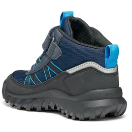 Geox fiúcipő, amely maximális vízállóságot és védelmet biztosít még esős napokon is. A Geox Simbyos ABX modell ezen változata nylonból és bőrhöz hasonló hatású anyagból készült, tengerészkék és fekete színösszeállításban. Kényelmes és rendkívül strapabíró, ideális választás szabadtéri kalandokhoz. Szárazon és jól szellőzve tartja a lábat, így a gyerekek magabiztosan élvezhetik az izgalmas napokat – időjárástól függetlenül.