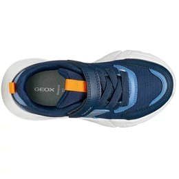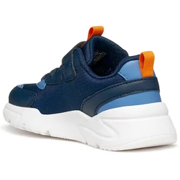 Könnyű, rugalmas, alacsony szárú Geox félcipő kisfiúk számára, futócipő ihlette dizájnnal és könnyen állítható tépőzárral és rugalmas fűzővel. A Geox Loftus modell sötétkék színű változata ideális választás iskolai mindennapokra, de tökéletesen kiegészíti a sportos, lezser öltözékeket is. A légáteresztő, párnázott cipő hálós anyagból és bőrhatású anyagból készült, maximális kényelmet biztosítva a mindennapi viselet során.