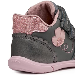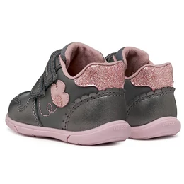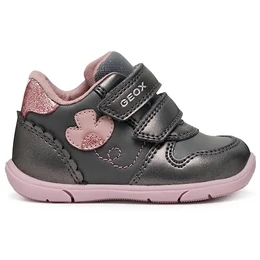 Első lépésekhez készült Geox bokacipő kislányoknak, sokoldalú kialakítással, amely sportos lendületet és kényelmes, stabil tartást ötvöz. Ez a változat különleges megjelenésű felsőrésszel rendelkezik, amely gyöngyházfényű és sima bőrhatású anyag kombinációjából készült, sötétszürke–rózsaszín színösszeállításban. A Geox Zapito modell tépőzáras rögzítése megkönnyíti a pontos illeszkedést, valamint stabil járást és megfelelő tartást biztosít, miközben a kis felfedezők élvezik mindennapi kalandjaikat.