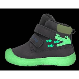 Valódi bőr felsőrész és puha műszőrme bélés,Viselése 5 °C és -10°C között javasoltSötétben világító - fluoreszkáló - talp| Napfény vagy erős fény (akár UV fény) hatására floureszkál a sötétben, a fényét fokozatosan veszti el, amit újra kell tölteniSpeciális, megerősített sarok- és lábújjvédelem,A megerősített kéreg stabil tartást biztosít,Könnyen le-, felvehető,A 3D varrástechnológia alkalmazásával minimálisra csökken a felhasznált kemikáliák és ragasztó mennyisége,Csúszásmentes, könnyű, rugalmas természetes gumiból készült talp
