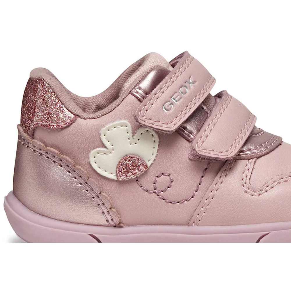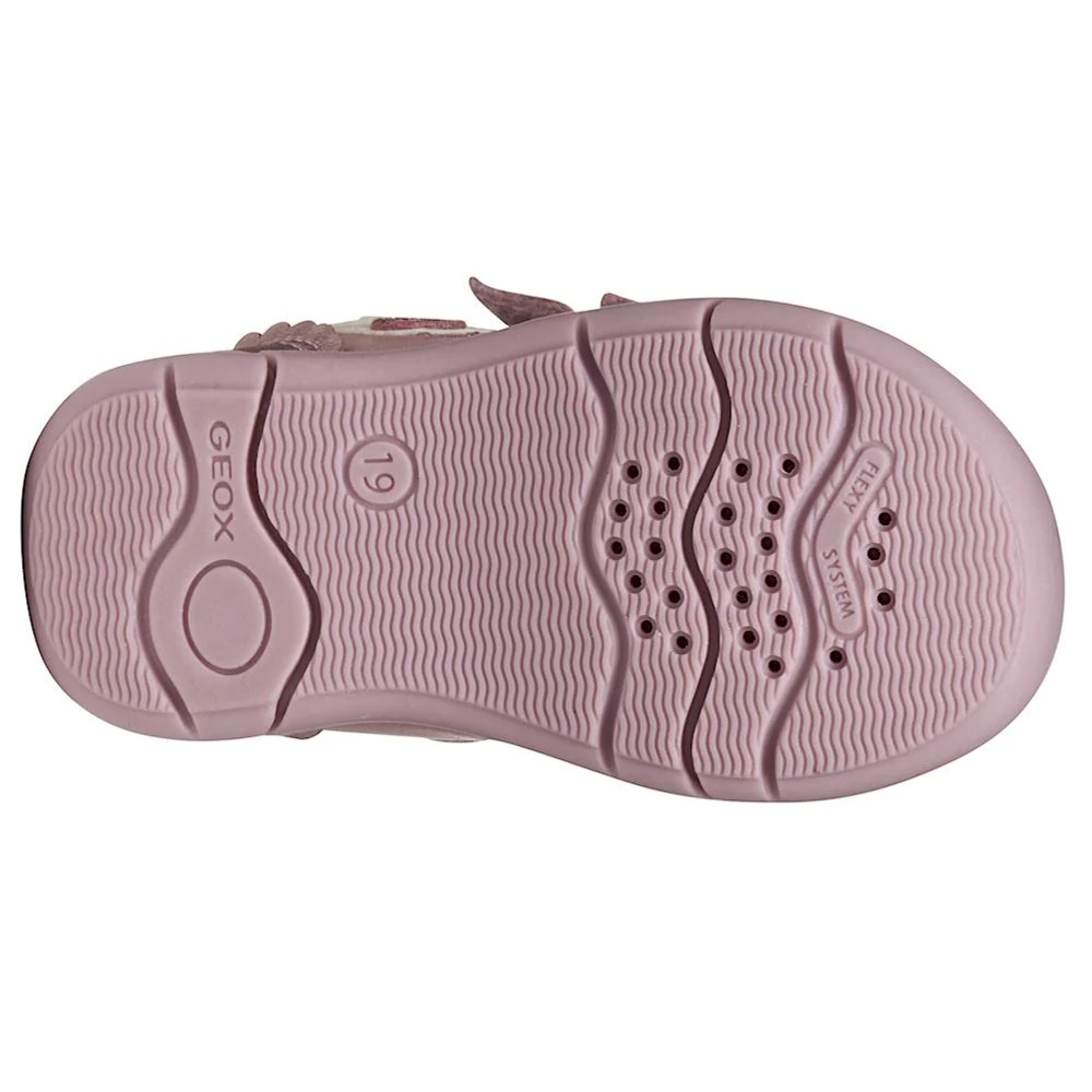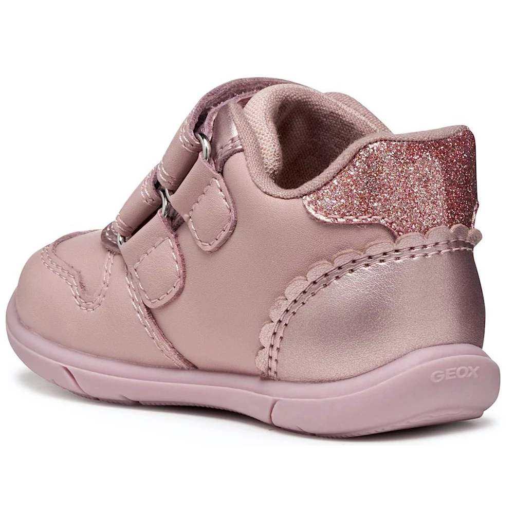 Első lépésekhez készült Geox bokacipő kislányoknak, sokoldalú kialakítással, amely sportos lendületet és kényelmes, stabil tartást ötvöz. Ez a változat különleges megjelenésű felsőrésszel rendelkezik, amely gyöngyházfényű és sima bőrhatású anyag kombinációjából készült, rózsaszínben. A Geox Zapito modell tépőzáras rögzítése megkönnyíti a pontos illeszkedést, valamint stabil járást és megfelelő tartást biztosít, miközben a kis felfedezők élvezik mindennapi kalandjaikat.