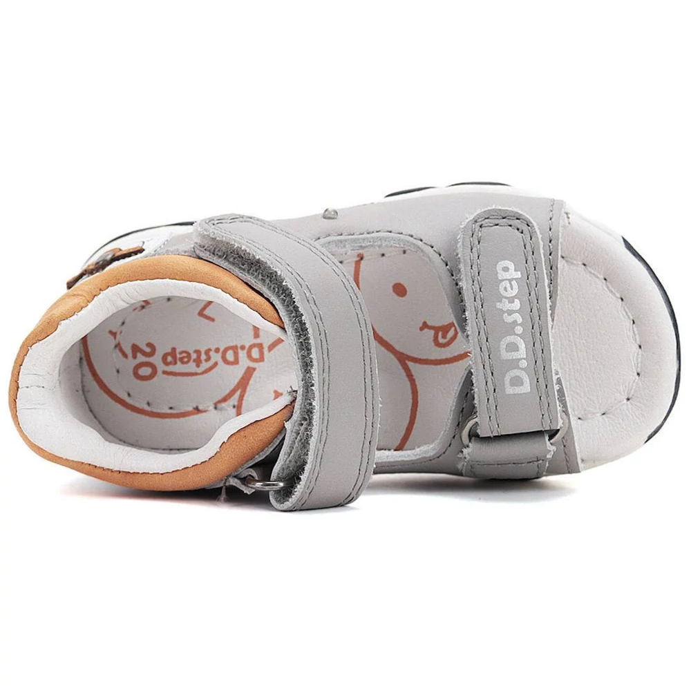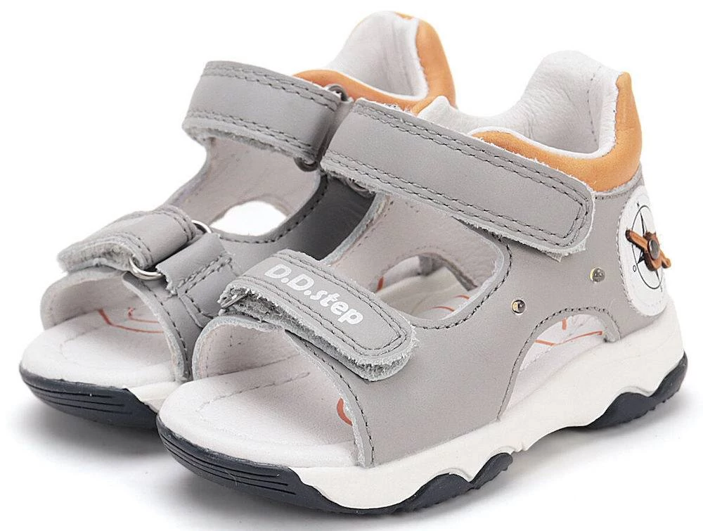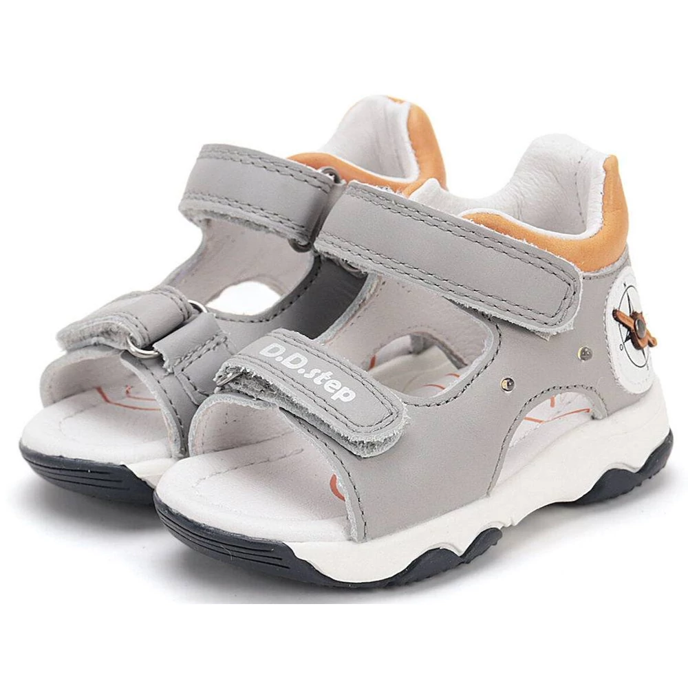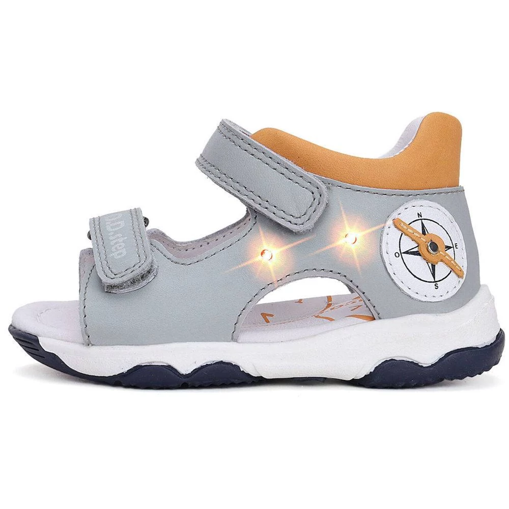 Könnyű, valódi bőr, szürke D.D.step gyerekszandál, oldalán villogó LED