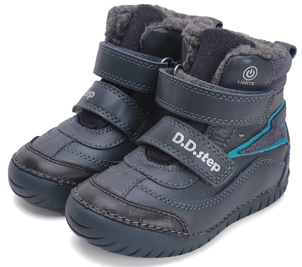 Melegbéléses, valódi bőr D.D.step gyerekcipő, villogó leddel