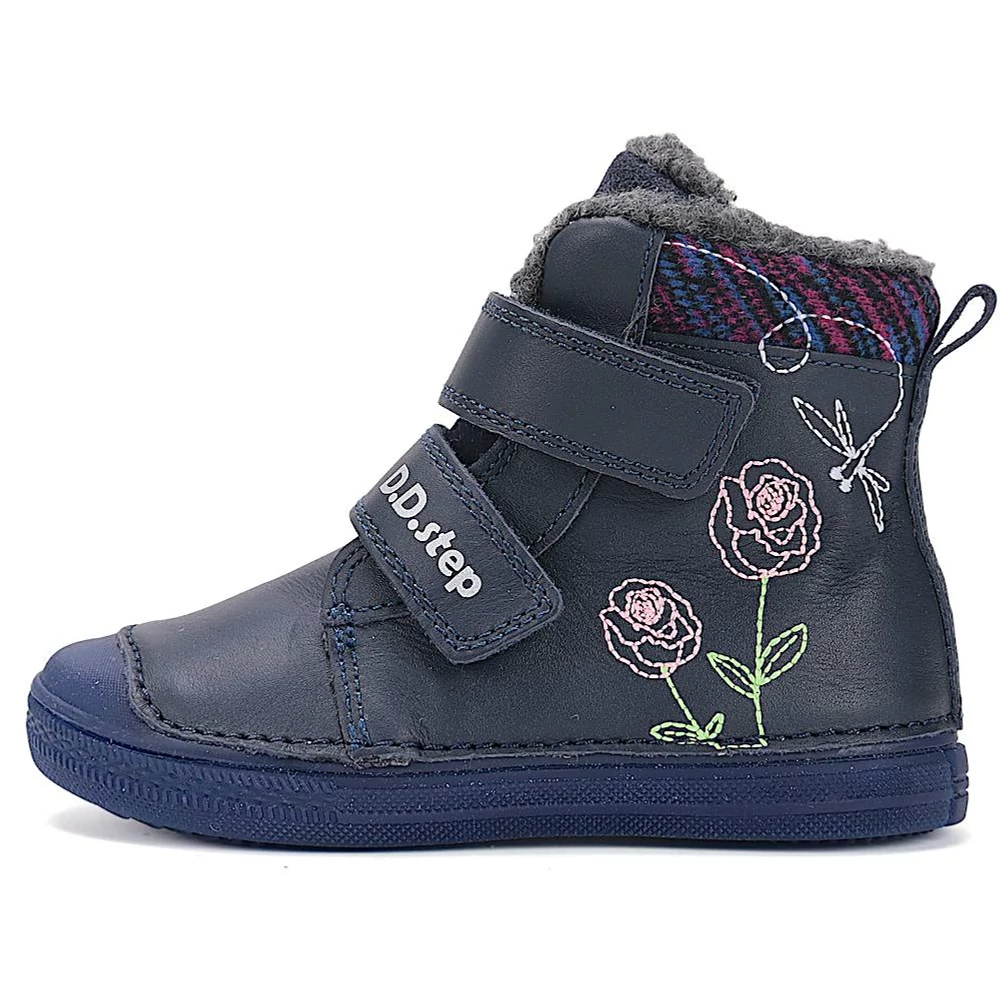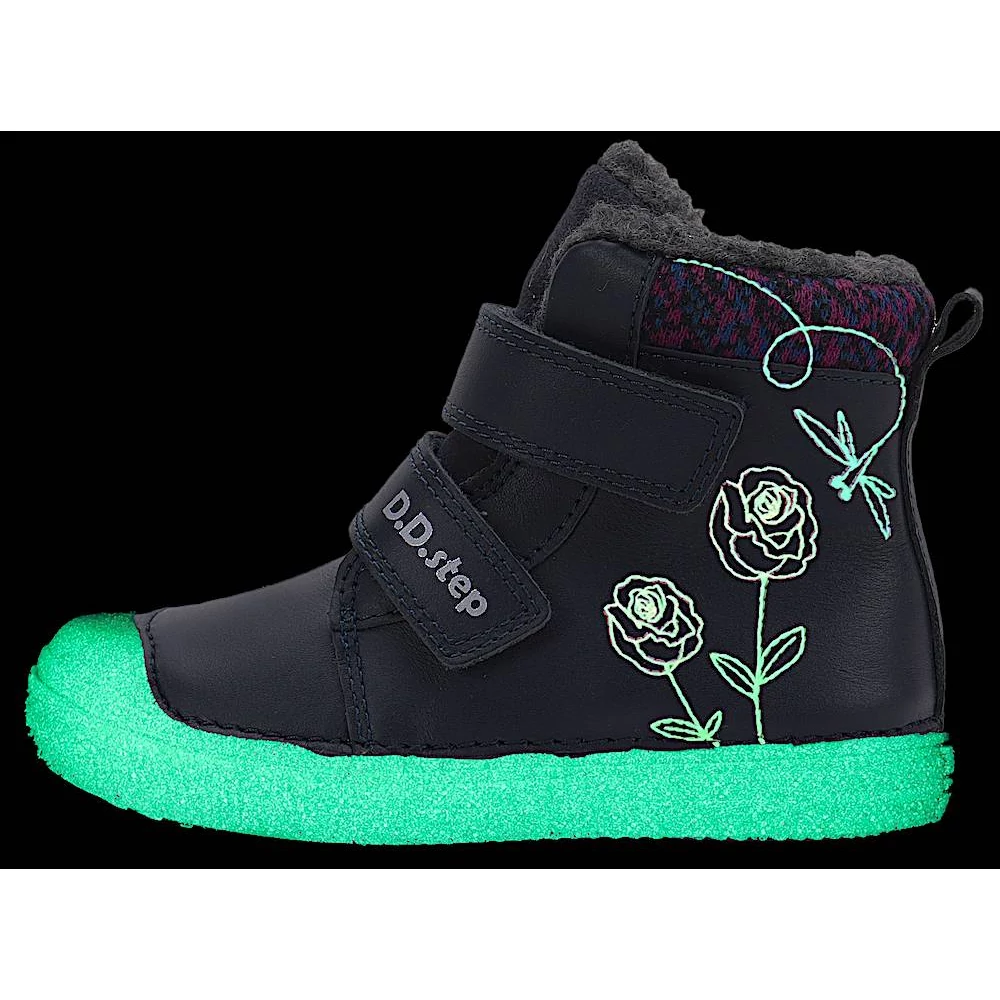 Melegbéléses, valódi bőr D.D.step kislány gyerekcipő, floureszkáló talppal