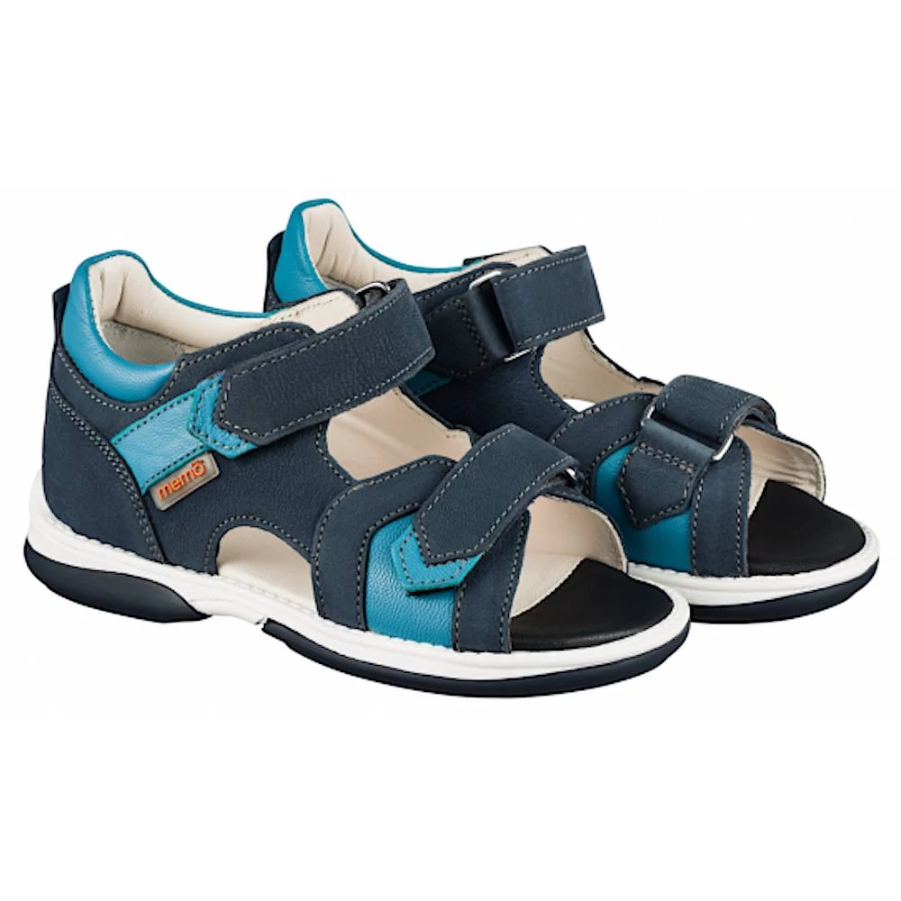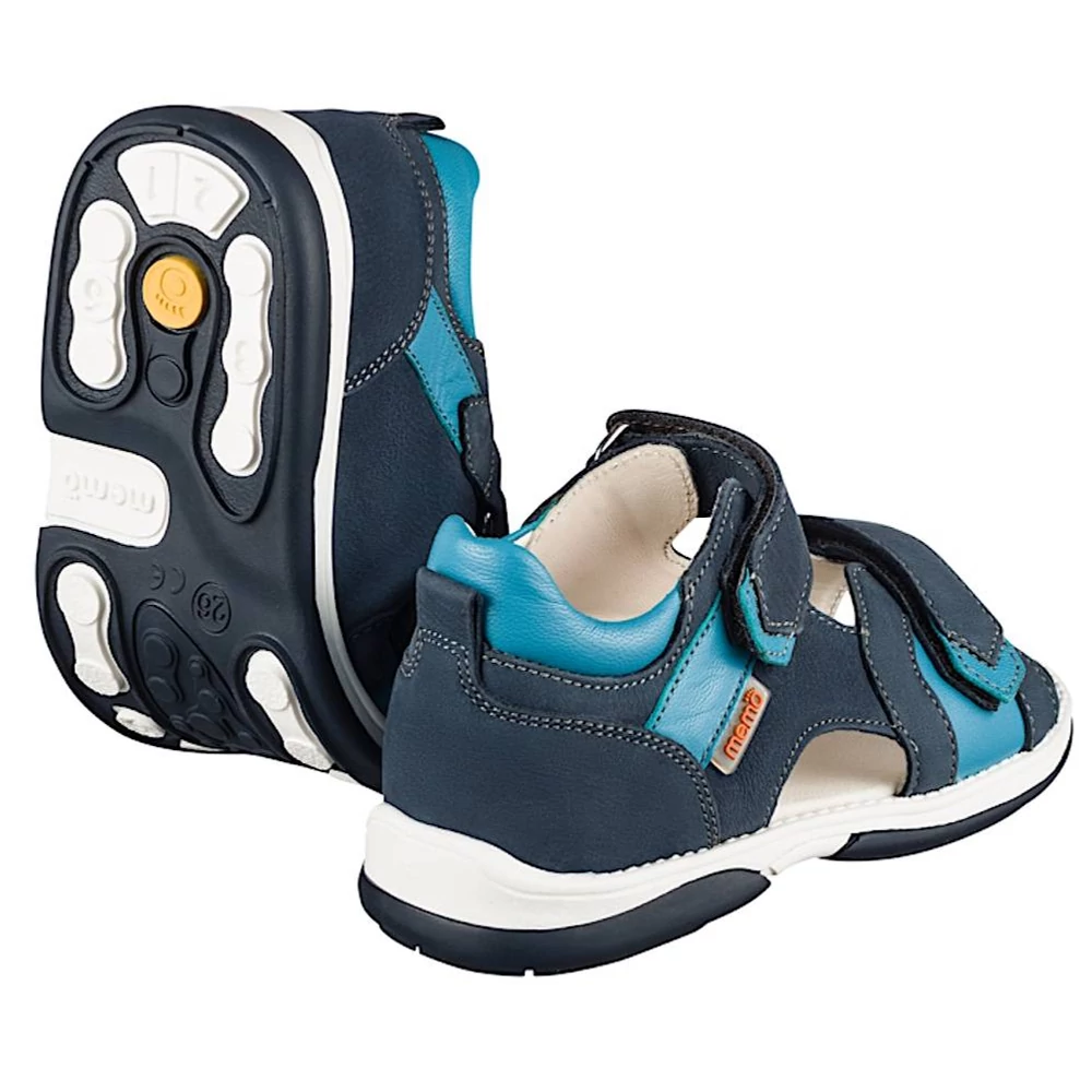 A MEMO Kris modellje valamennyi lábfejtípus számára megfelelő választás. A két tépőzáras, szupinált, természetes bőrből készült szandál kültéri és beltéri használatra egyaránt alkalmas. Kifejezetten jól szellőzik a külső oldali hasíték, valamint a cipőorrnál található szellőző lyukaknak köszönhetően. A sötétkék nubukbőr alap komolyságát a világoskék színű rátétek és varrások törik meg, teszik játékosabbá.