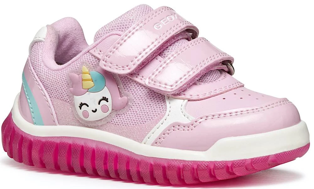 Sportos megjelenésű Geox  kislány félcipő, amelynek talpába beépített világítás került, így vidámmá varázsolja a kicsik mindennapjait az első lépések idején. A rózsaszín változat lakkozott hatású anyagból és fényes textilből készült, elegáns, nőies megjelenést kölcsönözve. A Geox Lightyloo modell tökéletes választás a kis felfedezők számára – stílusos megjelenést és kényelmes viseletet biztosít a mindennapi kalandokhoz.