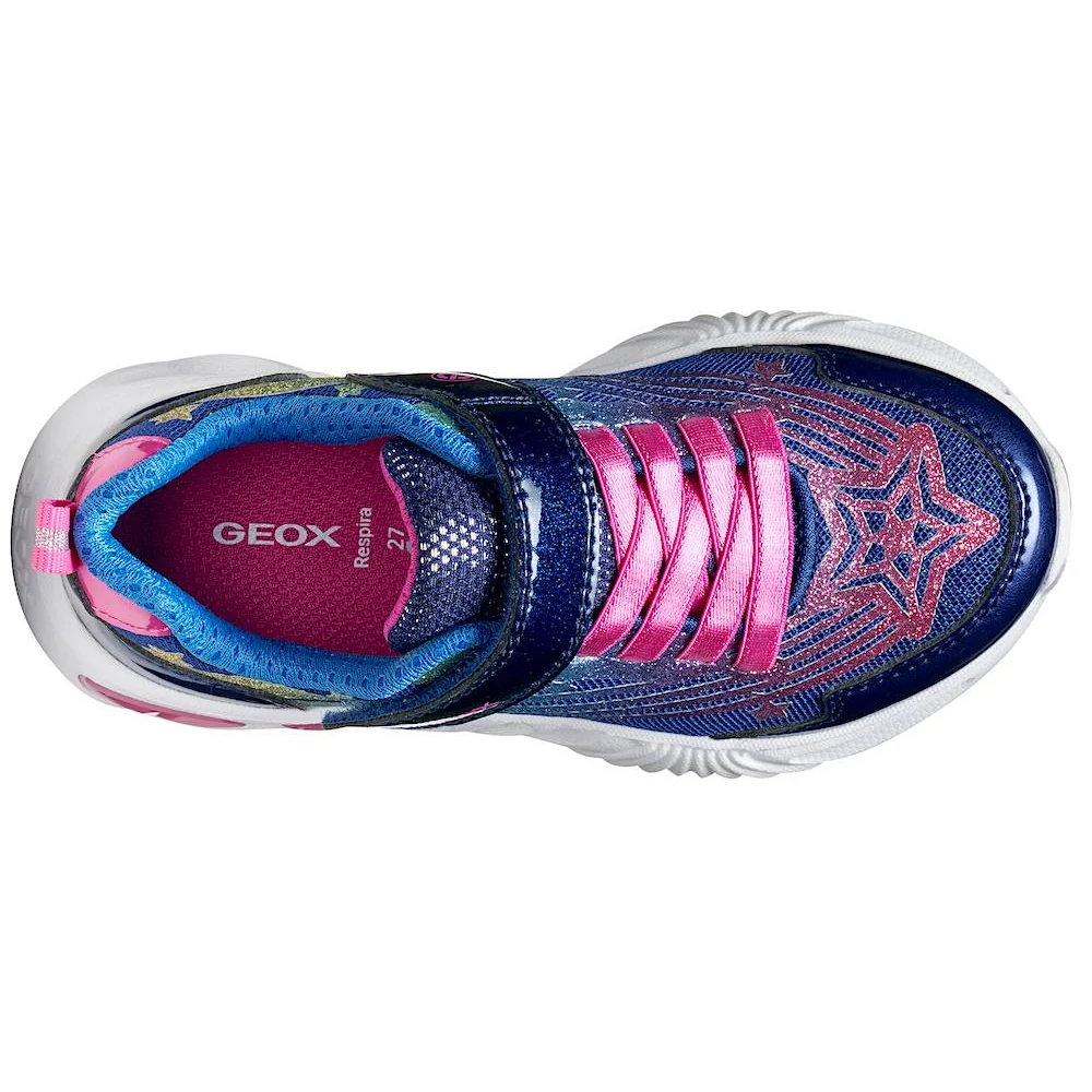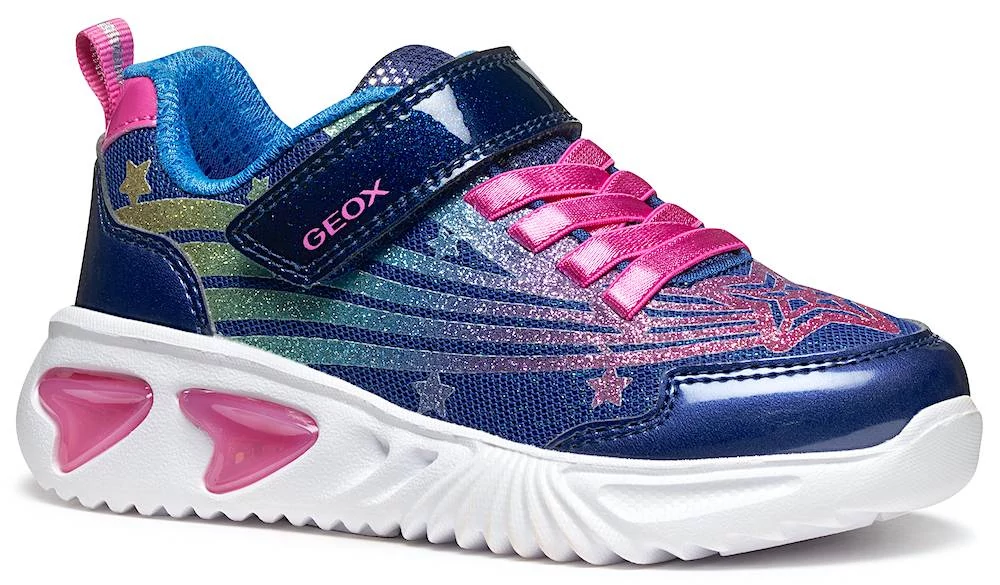 Sportos stílusú kislány Geox félcipő, modern, vagány dizájnnal, amely egyszerre biztosít kényelmet és lendületes megjelenést a mindennapokra. A Geox Assister modell sokszínű kék változata fényes textil, lakkozott hatású és gyöngyházfényű bőrhatású anyag kombinációjából készült, elegáns, csillogó hatást keltve. A talpba épített látványos világítás különleges megjelenést ad, így az Assister tökéletes választás a kis felfedezők játékos mindennapjaihoz és aktív időtöltéséhez.