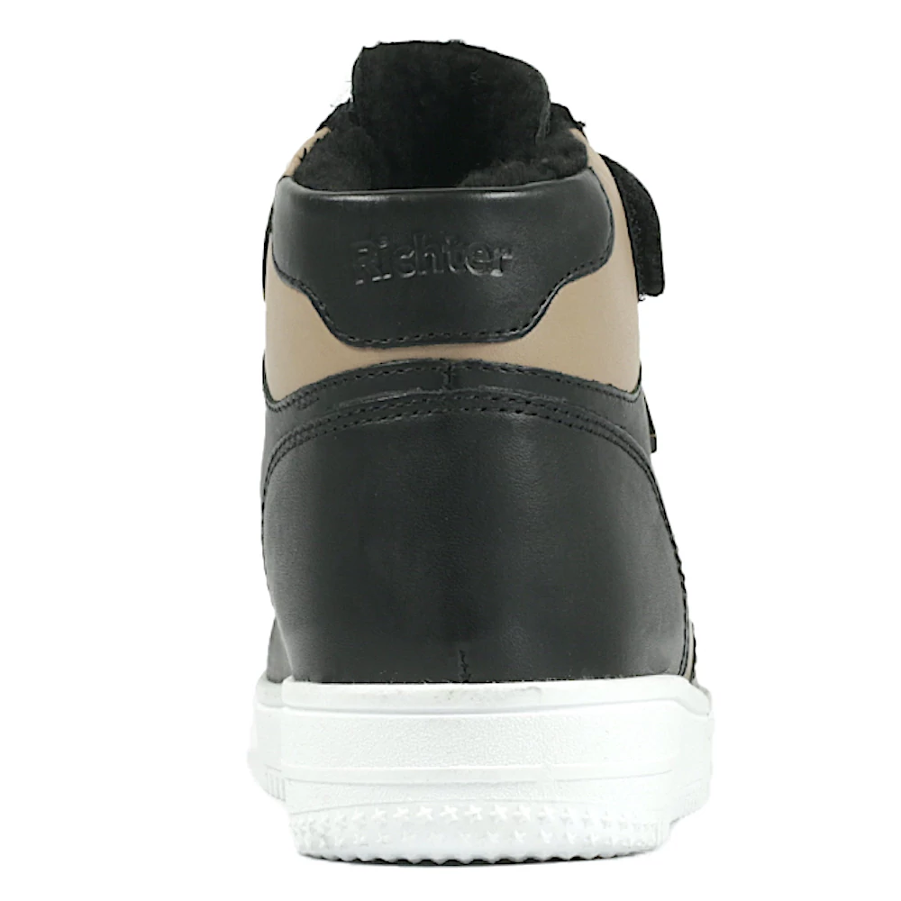 Plüssel (fleece) bélelt, vízálló Richter gyerekcipő, tépőzáras és rugalmas fűzős rögzítéssel. A fenntartható, újrahasznosított Richtex® membrán optimális kényelmet biztosít minden időjárás esetén. A Richtex® membrán a bélés és a felső anyag közé van beépítve, így a cipő 100%-ban vízálló, lélegző és szélálló.