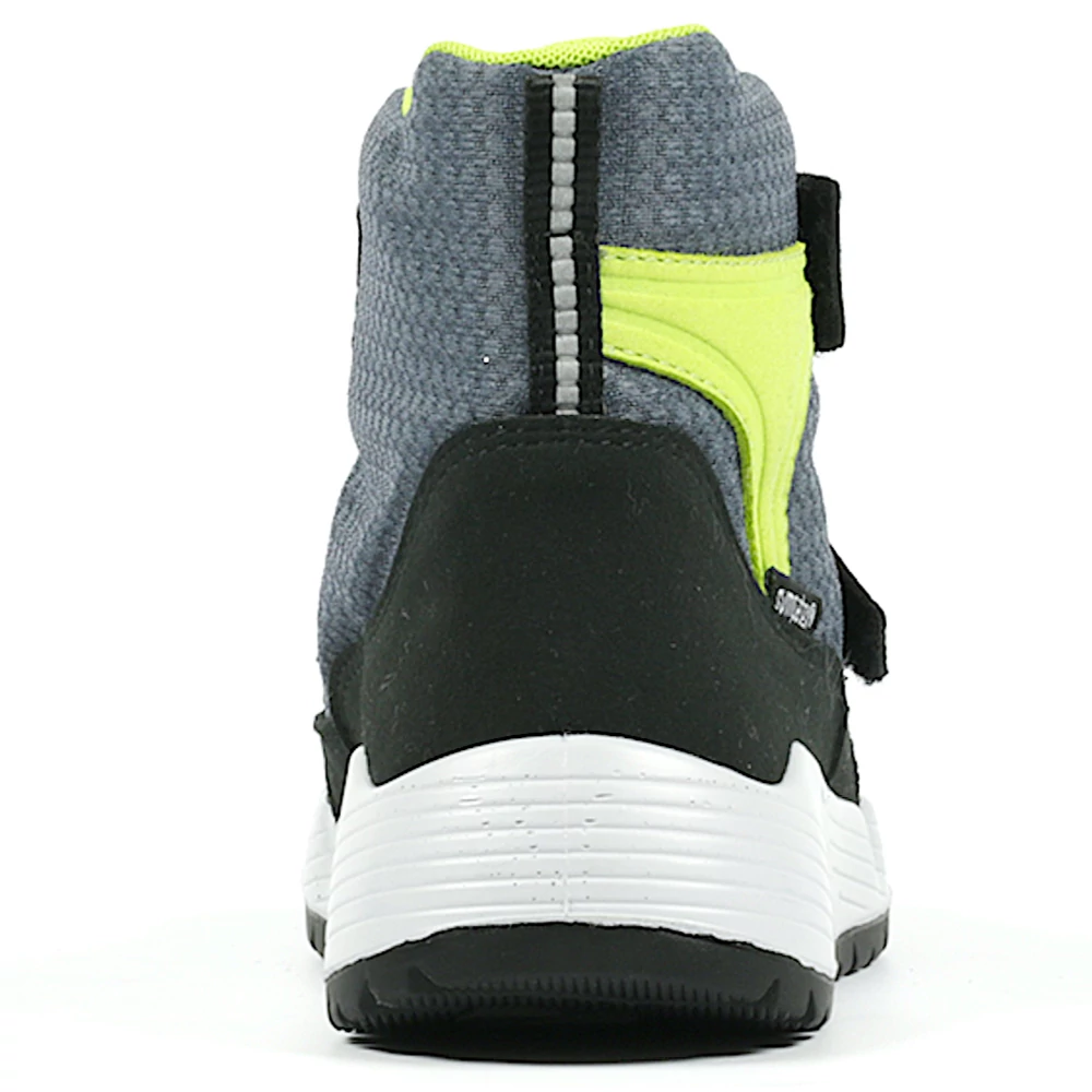 Melegen bélelt, vízálló Richter gyerekcsizma, tépőzáras rögzítéssel. A fenntartható, újrahasznosított Sympatex® membrán optimális kényelmet biztosít minden időjárás esetén. A Sympatex® membrán a bélés és a felső anyag közé van beépítve, így a cipő 100%-ban vízálló, lélegző és szélálló.